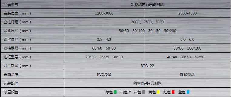 監(jiān)獄鋼網(wǎng)墻按照樣式與規(guī)格可細(xì)分為:鋼筋焊接式鋼網(wǎng)墻,鋼板拉伸式鋼網(wǎng)墻,刀刺網(wǎng)鋼網(wǎng)墻,太陽(yáng)花刺鋼網(wǎng)墻,梅花刺鋼網(wǎng)墻。