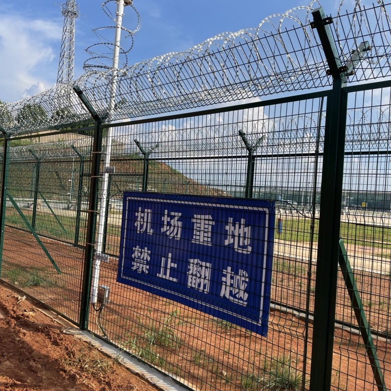 機場鐵絲網圍界常為熱鍍鋅后采用高質量的聚酯粉末靜電噴涂或浸塑工藝具有超高的防銹、防曬、防腐效果,同時顏色可選,能與環境有效融合到一起,美觀實用。機場鐵絲網圍界優勢實用性強,安全防護級別高,符合市場對質量和防護的要求;運輸方便,便于安裝適給不同的地形和地勢;通透性好,美觀大方,符合現代化審美需求;應用范圍廣,可以用于機場、監獄、軍事重地、核電站、場區等的隔離防護。