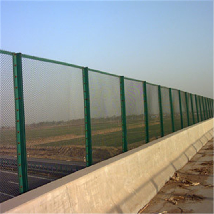 橋梁防拋網適用于采用混凝土護欄的上跨橋,防落物網設置間距為2m,膨脹螺栓應注意對螺栓外露部分妥善保護,防落網立柱與連接板,接地扁鋼應確保焊為一體,連接板通過膨脹螺栓固定。