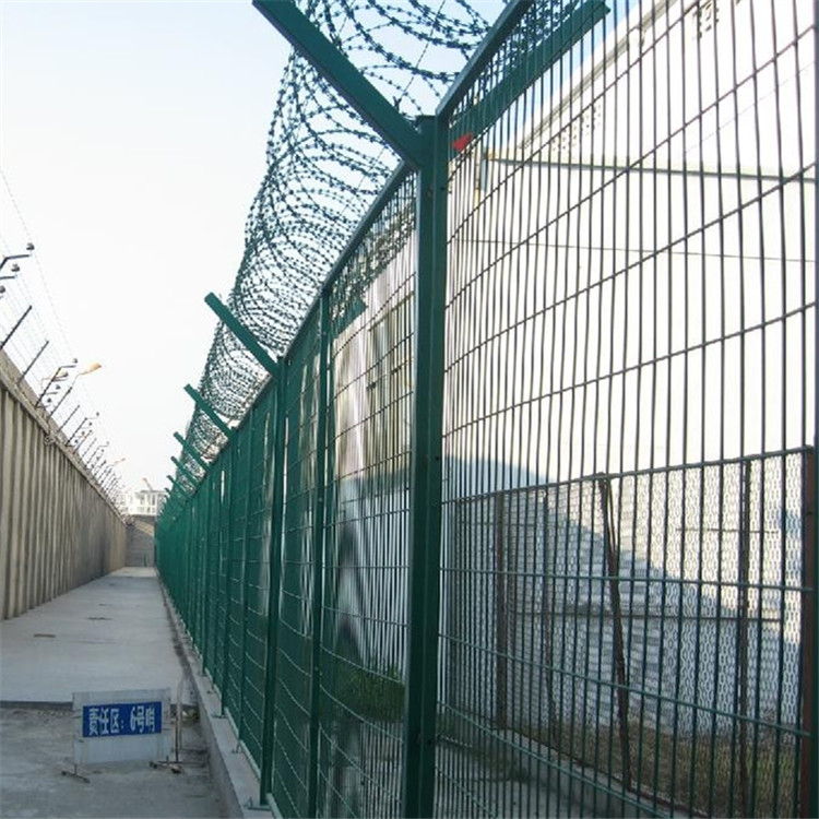 監(jiān)獄鋼網(wǎng)墻又稱作“Y型安全防御護(hù)網(wǎng)”,是由V型支架立柱,加強型焊接片網(wǎng),安全防盜連接件和熱鍍鋅刀片刺籠組成強度和安全防御性級別很高。近年來,被廣泛應(yīng)用在監(jiān)獄,軍事基地等高安全場所。在監(jiān)獄鋼網(wǎng)墻頂部加裝刀片剌絲、刀片剌繩后又很好的增強了安全防護(hù)性能。監(jiān)獄鋼網(wǎng)墻應(yīng)該如何選擇?
