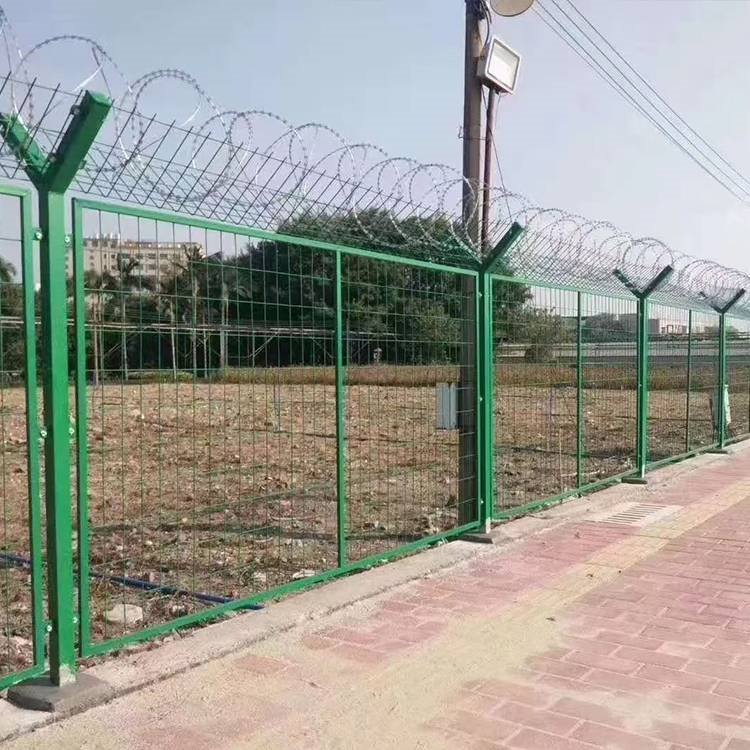 金屬網的種類很多, 其中就包括機場圍界網,機場圍界網也可以叫機場護欄網,是一種由低碳鋼絲焊接后再鍍鋅再噴塑或者浸塑的高端護欄網產品。通常采用Y字型立柱,這種造型是為了方便在頂部架設刀片刺網,這種組合模式可以大大提高機場圍界網的安全防護性能。